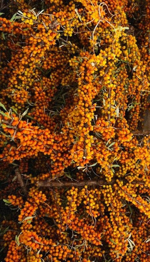 Seaberries can also processed into a number of dried products. Oils from the fruit and seed have been used in traditional medicine (in Russia and Northeast Asia) for centuries, and are also commonly used today in natural skin balms and other cosmetic materials. And the seeds themselves are a nutritious livestock feed — the Latin name hippophae means “shiny horse”, referring to the healthy coats of the animals that fed on its seeds.